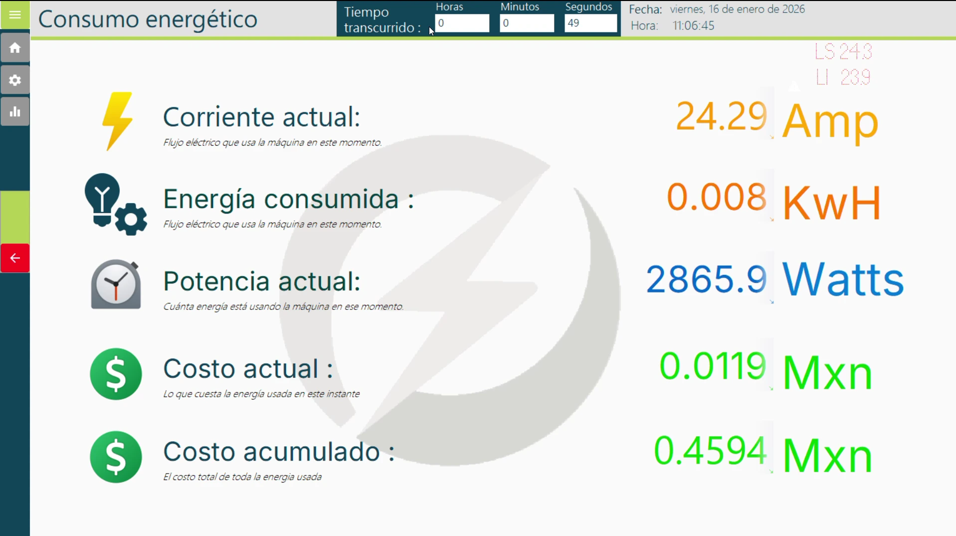 - Captura el consumo eléctrico continuamente